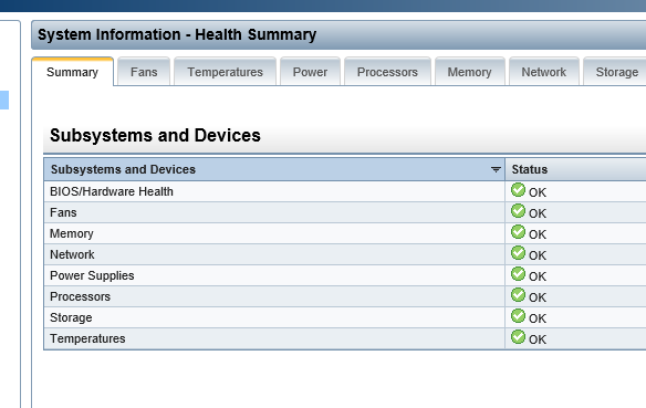 接下来我们来稍微看一下系统里的一些信息。可以看到各个部分都是OK,如果有不OK的,会有几个可能性,1是相关信息还没有提交完成,正在提交中,可以稍等几分钟再看。2是如果长时间都是错误信息,那么就可能是真的有问题了,例如磁盘阵列错误等。