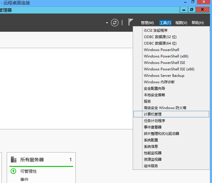 用最简单的方法初始化别的驱动器。我习惯用计算机管理中的磁盘管理操作,在2012中,快捷打开这个功能的方法是在服务器管理其中点击工具菜单,找到计算机管理即可。